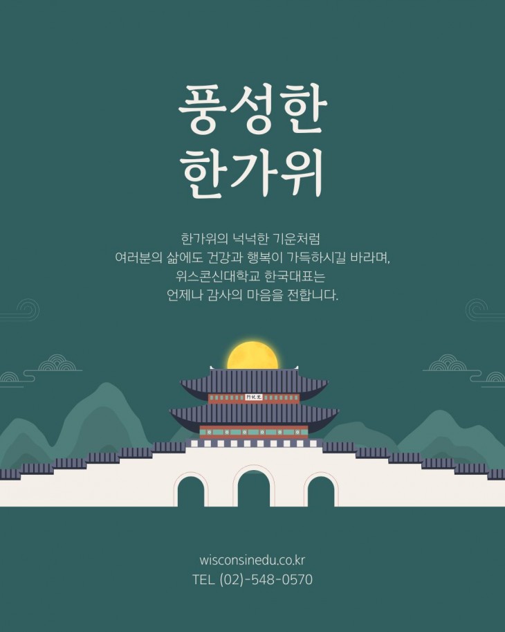 위스콘신대학교 한국대표는 민족의 대명절 추석을 맞이하여 아래의 기간 동안 휴무함을 알려드립니다.